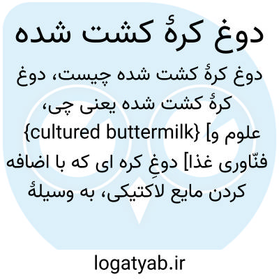 {cultured buttermilk} [علوم و فنّاوری غذا] دوغِ کره ای که با اضافه کردن مایع لاکتیکی، به وسیلۀ باکتری های لاکتیک ترش شده باشد