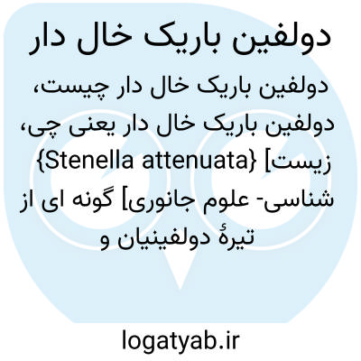 {Stenella attenuata} [زیست شناسی- علوم جانوری] گونه ای از تیرۀ دولفینیان و راستۀ آب بازسانان که هم زمان با بلوغ بدنش خال دار می شود و یک برآمدگی از جنس چربی بر روی پیشانی دارد