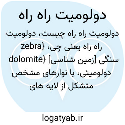 {zebra dolomite} [زمین شناسی] سنگی دولومیتی، با نوارهای مشخص متشکل از لایه های خاکستری روشن درشت بافت و لایه های تیره تر ریزبافت