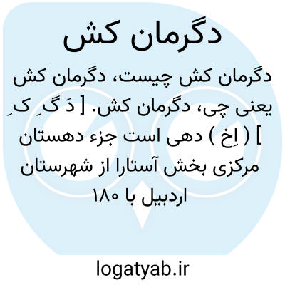 دگرمان کش. [ دَ گ ِ ک ِ ] ( اِخ ) دهی است جزء دهستان مرکزی بخش آستارا از شهرستان اردبیل با 180 تن سکنه. آب آن از رودخانه و چشمه است. ( از فرهنگ جغرافیایی ایران ج 4 ).