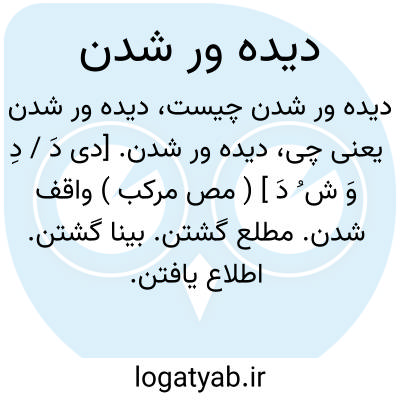 دیده ور شدن. [دی دَ / دِ وَ ش ُ دَ ] ( مص مرکب ) واقف شدن. مطلع گشتن. بینا گشتن. اطلاع یافتن. اطلاع. ( منتهی الارب ) ( ترجمان القرآن ) ( المصادر ) ( تاج المصادر بیهقی ). عثر. عثور. ( تاج المصادر ) ( ترجمان القرآن ) ( دهار ). التقاط؛ آگاه و دیده ور شدن به چیزی بی جستجو. ( منتهی الارب ).