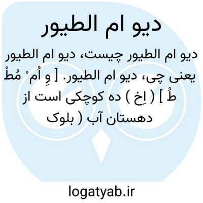 دیو ام الطیور. [ وِ اُم ْ مُطْ طُ ] ( اِخ ) ده کوچکی است از دهستان آب ( بلوک شعیبیه ) بخش مرکزی شهرستان اهواز در 38 هزارگزی شمال خاوری اهواز و 7 هزارگزی خاور ایستگاه. ( از فرهنگ جغرافیائی ایران ج 6 ).