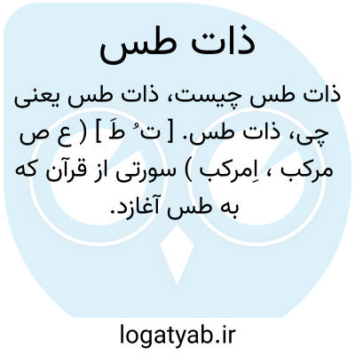 ذات طس. [ ت ُ طَ ] ( ع ص مرکب، اِمرکب ) سورتی از قرآن که به طس آغازد.