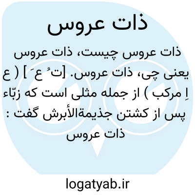 ذات عروس. [ت ُ ع َ ] ( ع اِ مرکب ) از جمله مثلی است که زبّاء پس از کشتن جذیمةالأبرش گفت: ذات عروس تری. ( المرصع ).