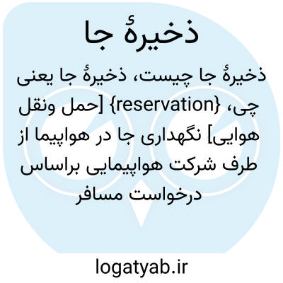 {reservation} [حمل ونقل هوایی] نگهداری جا در هواپیما از طرف شرکت هواپیمایی براساس درخواست مسافر