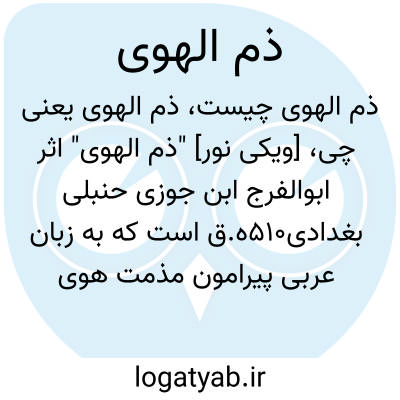 [ویکی نور] "ذم الهوی" اثر ابوالفرج ابن جوزی حنبلی بغدادی510ه.ق است که به زبان عربی پیرامون مذمت هوی و هوس و مجاهده با نفس و پیروی از عقل می باشد.