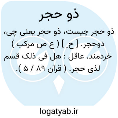 ذوحجر. [ ح ِ ] ( ع ص مرکب ) خردمند. عاقل: هل فی ذلک قسم لذی حجر. ( قرآن 89 / 5 ).