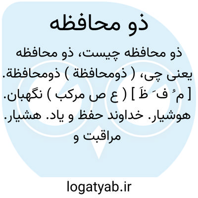 ( ذومحافظة ) ذومحافظة. [ م ُ ف َ ظَ ] ( ع ص مرکب ) نگهبان. هوشیار. خداوند حفظ و یاد. هشیار. مراقبت و مواظب برکار.