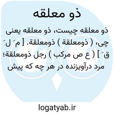 ( ذومعلقة ) ذومعلقة. [ م َ ل َ ق َ ] ( ع ص مرکب ) رجل ذومعلقة؛ مرد درآویزنده در هر چه که پیش آید. ( منتهی الارب ).