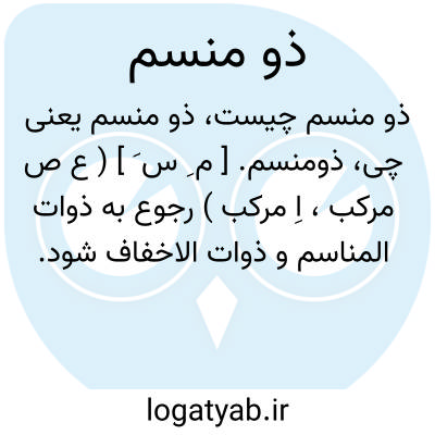 ذومنسم. [ م ِ س َ ] ( ع ص مرکب، اِ مرکب ) رجوع به ذوات المناسم و ذوات الاخفاف شود.