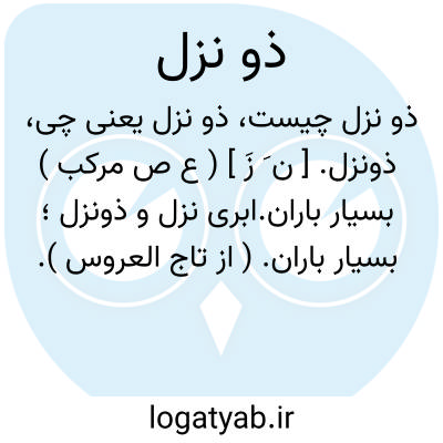 ذونزل. [ ن َ زَ ] ( ع ص مرکب ) بسیار باران.ابری نزل و ذونزل؛ بسیار باران. ( از تاج العروس ).