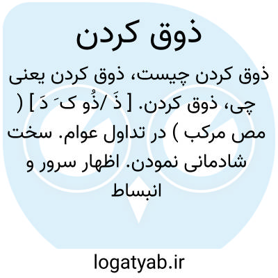 ذوق کردن. [ ذَ /ذُو ک َ دَ ] ( مص مرکب ) در تداول عوام. سخت شادمانی نمودن. اظهار سرور و انبساط بسیار کردن: