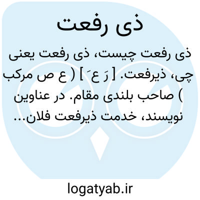 ذیرفعت. [ رَ ع َ ] ( ع ص مرکب ) صاحب بلندی مقام. در عناوین نویسند، خدمت ذیرفعت فلان...