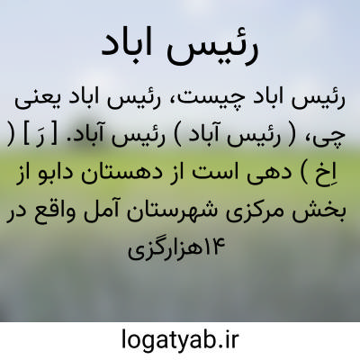 ( رئیس آباد ) رئیس آباد. [ رَ ] ( اِخ ) دهی است از دهستان دابو از بخش مرکزی شهرستان آمل واقع در 14هزارگزی شمال خاوری آمل. سکنه آن 159 تن. آب رئیس آباد از رودخانه هراز تأمین میشود و محصول عمده آن برنج و صیفی است. ( از فرهنگ جغرافیایی ایران ج 3 ).