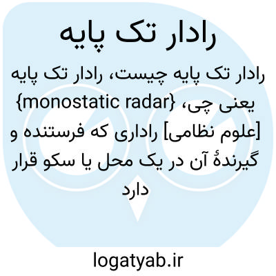 {monostatic radar} [علوم نظامی] راداری که فرستنده و گیرندۀ آن در یک محل یا سکو قرار دارد