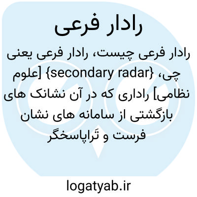 {secondary radar} [علوم نظامی] راداری که در آن نشانک های بازگشتی از سامانه های نشان فرست و تَراپاسخگر و تکرارکننده دریافت می شود
