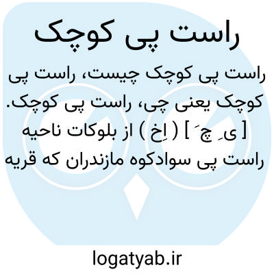 راست پی کوچک. [ ی ِ چ َ ] ( اِخ ) از بلوکات ناحیه راست پی سوادکوه مازندران که قریه مهم آن شورست است. ( از جغرافیای سیاسی کیهان ص 292 ).