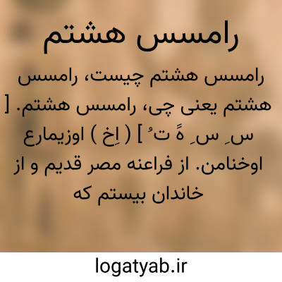 رامسس هشتم. [ س ِ س ِ هََ ت ُ ] ( اِخ ) اوزیمارع اوخنامن. از فراعنه مصر قدیم و از خاندان بیستم که سلطنت کوتاهی داشته است. رجوع بتاریخ مصر قدیم ص 27 شود.