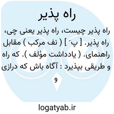 راه پذیر. [ پ َ ] ( نف مرکب ) مقابل راهنمای. ( یادداشت مؤلف ). که راه و طریقی بپذیرد: آگاه باش که درازی و کوتاهی افتد برانگیختن را از بهر یافتن متعلم راه پذیر از عالم راهنمای... ( کشف المحجوب سجستانی ).
