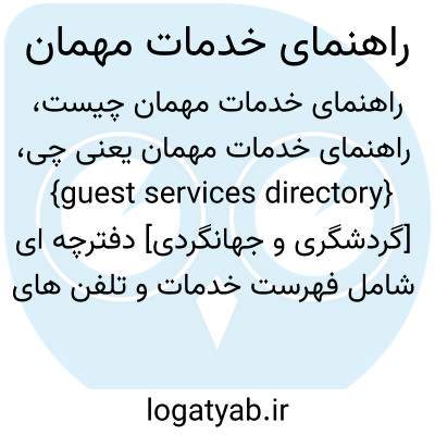 {guest services directory} [گردشگری و جهانگردی] دفترچه ای شامل فهرست خدمات و تلفن های ضروری که در هریک از اتاق های مهمان خانه در دسترس مهمان ها قرار دارد