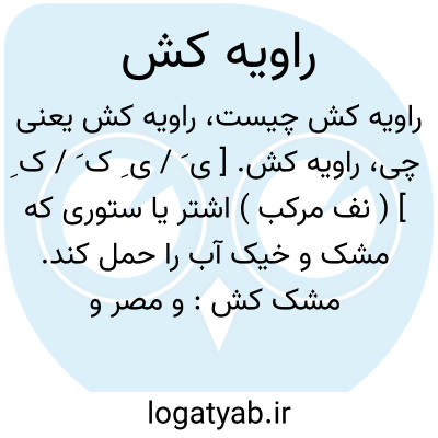 راویه کش. [ ی َ / ی ِ ک َ / ک ِ ] ( نف مرکب ) اشتر یا ستوری که مشک و خیک آب را حمل کند. مشک کش: و مصر و قاهره را گویند پنجاه هزار شتر راویه کش است که سقایان آب کشند و سقایان که آب بر پشت کشند خودجدا باشند. ( سفرنامه ناصرخسرو چ دبیرسیاقی ص 56 ).