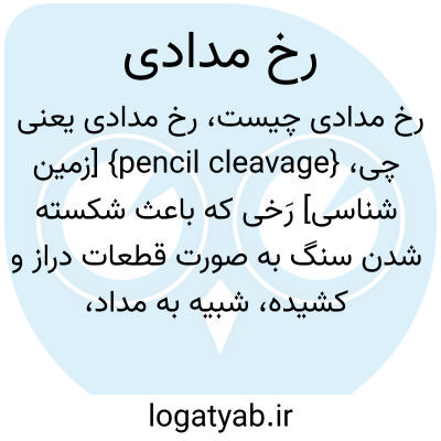 {pencil cleavage} [زمین شناسی] رَخی که باعث شکسته شدن سنگ به صورت قطعات دراز و کشیده، شبیه به مداد، میشود متـ. ساختار مدادی pencil structure