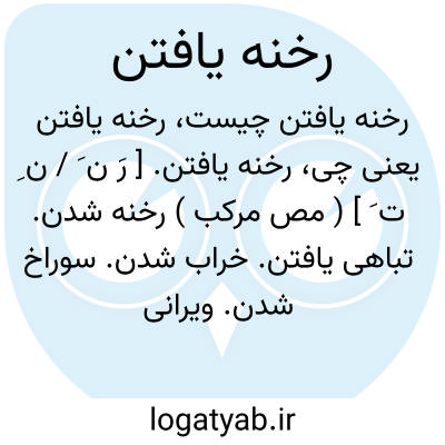 رخنه یافتن. [ رَ ن َ / ن ِ ت َ ] ( مص مرکب ) رخنه شدن. تباهی یافتن. خراب شدن. سوراخ شدن. ویرانی گرفتن: