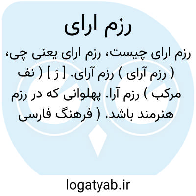 ( رزم آرای ) رزم آرای. [ رَ ] ( نف مرکب ) رزم آرا. پهلوانی که در رزم هنرمند باشد. ( فرهنگ فارسی معین ). هنرمند در نبرد و جنگ. که در رزم ماهر باشد. رزم آزموده. آرایش دهنده جنگ: