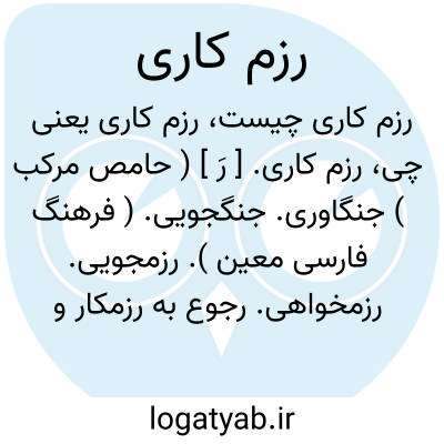 لغت نامه دهخدا رزم کاری. [ رَ ] ( حامص مرکب ) جنگاوری. جنگجویی. ( فرهنگ فارسی معین ). رزمجویی. رزمخواهی. رجوع به رزمکار و مترادفات کلمه شود.