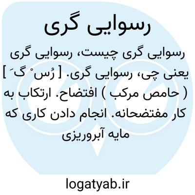 رسوایی گری. [ رُس ْ گ َ ] ( حامص مرکب ) افتضاح. ارتکاب به کار مفتضحانه. انجام دادن کاری که مایه آبروریزی است. ( از یادداشت مؤلف ).