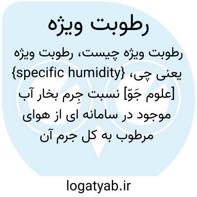 {specific humidity} [علوم جَوّ] نسبت جِرم بخار آب موجود در سامانه ای از هوای مرطوب به کل جرم آن