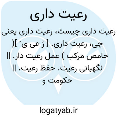 رعیت داری. [ رَ عی ی َ ]( حامص مرکب ) عمل رعیت دار. || نگهبانی رعیت. حفظ رعیت. || حکومت و ضبط و ربط تدبیر در حکومت. ( ناظم الاطباء ). سیاست. ( یادداشت مؤلف ).
