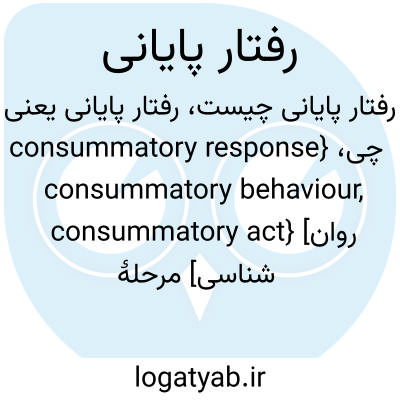 {consummatory response consummatory behaviour, consummatory act} [روان شناسی] مرحلۀ نهایی زنجیره ای از رفتارها که در جهت ارضای یک میل است و به کاهش سائقی مشخص می انجامد
