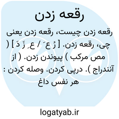 رقعه زدن. [ رُ ع َ / ع ِ زَ دَ ] ( مص مرکب ) پیوندن زدن. ( از آنندراج ). درپی کردن. وصله کردن: