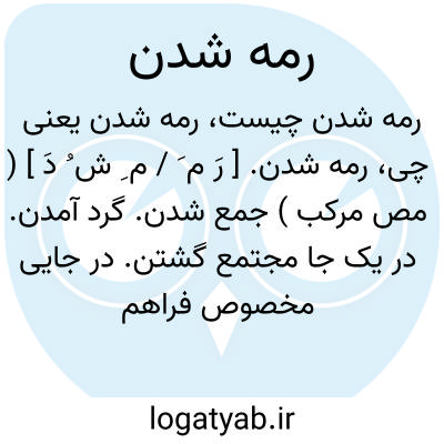 رمه شدن. [ رَ م َ / م ِ ش ُ دَ ] ( مص مرکب ) جمع شدن. گرد آمدن. در یک جا مجتمع گشتن. در جایی مخصوص فراهم آمدن. رمه گشتن. رجوع به رمه گشتن شود: