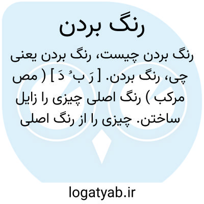 رنگ بردن. [ رَ ب ُ دَ ] ( مص مرکب ) رنگ اصلی چیزی را زایل ساختن. چیزی را از رنگ اصلی بگردانیدن. تغییر دادن و دگرگون ساختن رنگ چیزی. رنگ برداشتن: