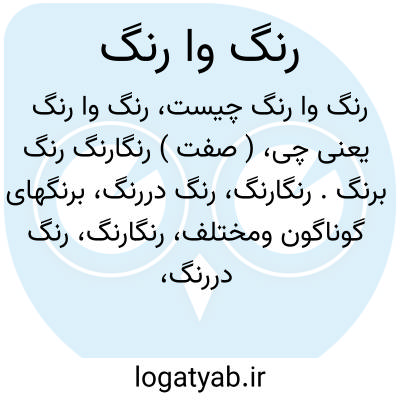 فرهنگ فارسی ( صفت ) رنگارنگ رنگ برنگ.رنگارنگ، رنگ دررنگ، برنگهای گوناگون ومختلف، رنگارنگ، رنگ دررنگ، برنگهای گوناگون ومختلف