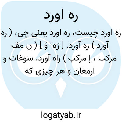 ( ره آورد ) ( اسم ) چیزی که کسی از سفر برای خویشان و دوستان آورد سوغات هدیه نورهان.