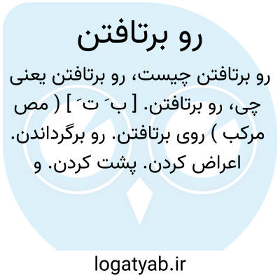 رو برتافتن. [ ب َ ت َ ] ( مص مرکب ) روی برتافتن. رو برگرداندن. اعراض کردن. پشت کردن. و رجوع به روی برتافتن و رو برگرداندن شود.