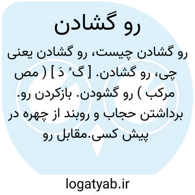 رو گشادن. [ گ ُ دَ ] ( مص مرکب ) رو گشودن. بازکردن رو. برداشتن حجاب و روبند از چهره در پیش کسی.مقابل رو گرفتن. ( از یادداشت بخط مؤلف ). و رجوع به رو گرفتن شود. || باز کردن رخسار کسی. حجاب از روی کسی برداشتن. نقاب از چهره کسی افکندن.