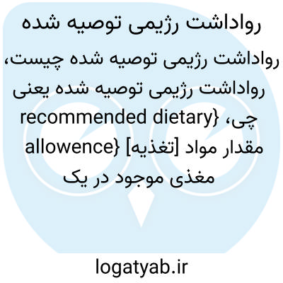 {recommended dietary allowence} [تغذیه] مقدار مواد مغذی موجود در یک رژیم غذایی خاص که متخصص آن را مجاز می داند و توصیه می کند