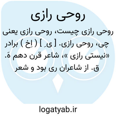 روحی رازی. [ ی ِ ] ( اِخ ) برادر «نیستی رازی »، شاعر قرن دهم هَ. ق. از شاعران ری بود و شعر خوب میگفت. او راست این مطلع: