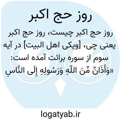[ویکی اهل البیت] در آیه سوم از سوره برائت آمده است: «وَأَذَانٌ مِّنَ اللّهِ وَرَسُولِهِ إِلَی النَّاسِ یَوْمَ الْحَجِّ الأَکْبَرِ أَنَّ اللّهَ بَرِیءٌ مِّنَ الْمُشْرِکِینَ وَرَسُولُهُ فَإِن تُبْتُمْ فَهُوَ خَیْرٌ لَّکُمْ وَإِن تَوَلَّیْتُمْ فَاعْلَمُواْ أَنَّکُمْ غَیْرُ مُعْجِزِی اللّهِ وَبَشِّرِ الَّذِینَ کَفَرُواْ بِعَذَابٍ أَلِیمٍ»؛ (و این آیات) اعلامی است از خدا و پیغمبرش به مردم در روز حج اکبر که خداوند و رسولش بیزار است. از مشرکین، حال اگر توبه کردید که توبه برایتان بهتر است و اما اگر سرپیچیدید، پس بدانید که شما ناتوان کننده خدا نیستید و تو (ای محمد) کسانی را که کفر ورزند به عذاب دردناکی بشارت ده.