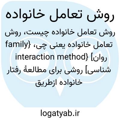 {family interaction method} [روان شناسی] روشی برای مطالعۀ رفتار خانواده ازطریق مشاهدۀ تعامل اعضای آن در موقعیتی واپایش شده، مانند آزمایشگاه یا درمانگاه