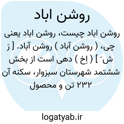 ( روشن آباد ) روشن آباد. [ رَ ش َ ] ( اِخ ) دهی است از بخش ششتمد شهرستان سبزوار، سکنه آن 232 تن و محصول آنجا غلات و پنبه. آب آن از قنات. ( از فرهنگ جغرافیایی ایران ج 3 ).