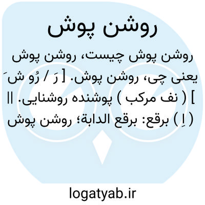 روشن پوش. [ رَ / رُو ش َ ] ( نف مرکب ) پوشنده روشنایی. || ( اِ ) برقع: برقع الدابة؛ روشن پوش پوشید ستور را. ( از زمخشری ).