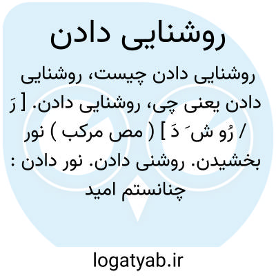 روشنایی دادن. [ رَ / رُو ش َ دَ ] ( مص مرکب ) نور بخشیدن. روشنی دادن. نور دادن: چنانستم امید کز روزگار به ما روشنایی دهد کردگار.فردوسی.خاکپایت دیده ها را روشنایی میدهد هر سحر بوی تو با جان آشنایی میدهد.خاقانی.تیره شد کار من از غم هان و هان دریاب کار تا چراغ عمر قدری روشنایی میدهد.خاقانی.وجودی دهد روشنایی به جمع که سوزیش در سینه باشد چو شمع.سعدی.