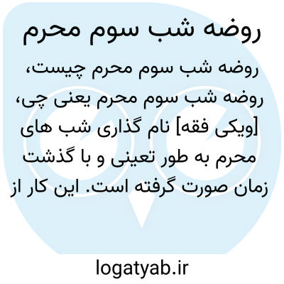 [ویکی فقه] نام گذاری شب های محرم به طور تعینی و با گذشت زمان صورت گرفته است. این کار از ناحیه ذاکران اهل بیت (علیهم السّلام) به تقلید از شب های خاصی مانند: عاشورا و تاسوعا انجام گرفته است. شب سوم محرم، به نام مبارک حضرت رقیه (سلام الله علیها) دردانه سه ساله حسین بن علی (علیه السّلام) نام گذاری شده است.