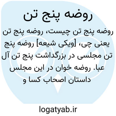 [ویکی شیعه] روضه پنج تن مجلسی در بزرگداشت پنج تن آل عبا. روضه خوان در این مجلس داستان اصحاب کسا و فضایل آنان را بازگو می کند. بیان جریان اصحاب کسا معمولا با شعر است و پس از آن گریزی به مصیبت امام حسین(ع) زده و در پایان برای برآورده شدن حاجات حاضران دعا می شود. اشعار این مجلس معمولا ترجمه منظوم حدیث کسا است.
