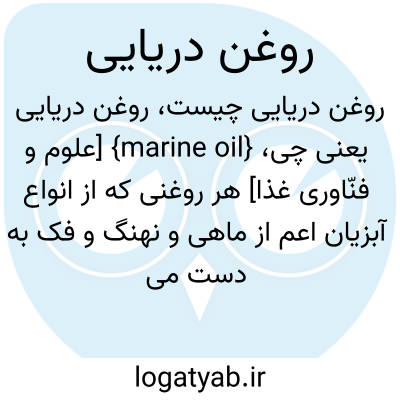 {marine oil} [علوم و فنّاوری غذا] هر روغنی که از انواع آبزیان اعم از ماهی و نهنگ و فک به دست می آید
